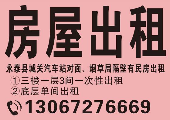 永泰城关,坪街,重光寺一带,临街套房出租。