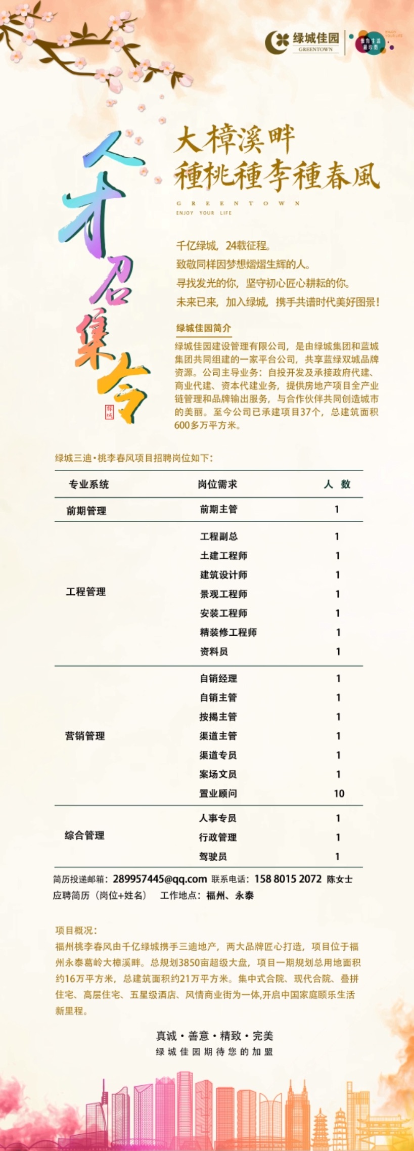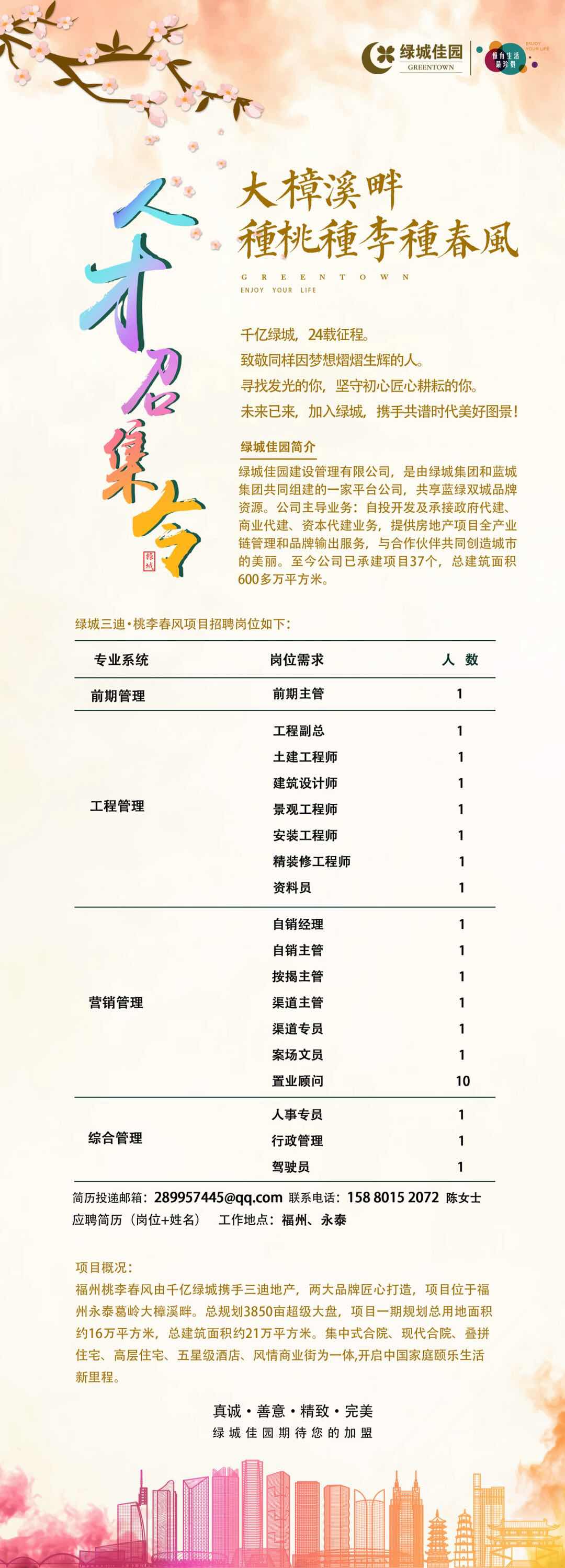 绿城 福州桃李春风项目招聘