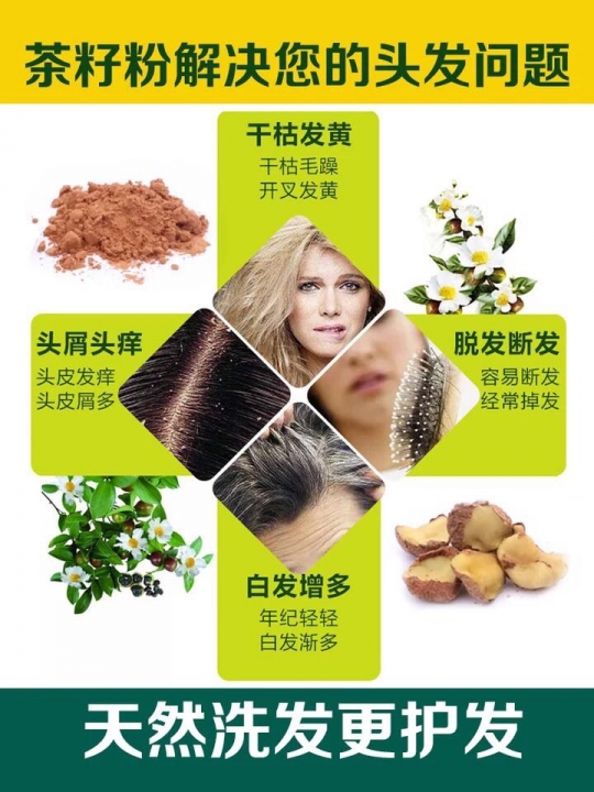 茶籽饼含有效成分为:茶皂素、蛋白质、残余的天然茶油等,长期使用有止屑、...